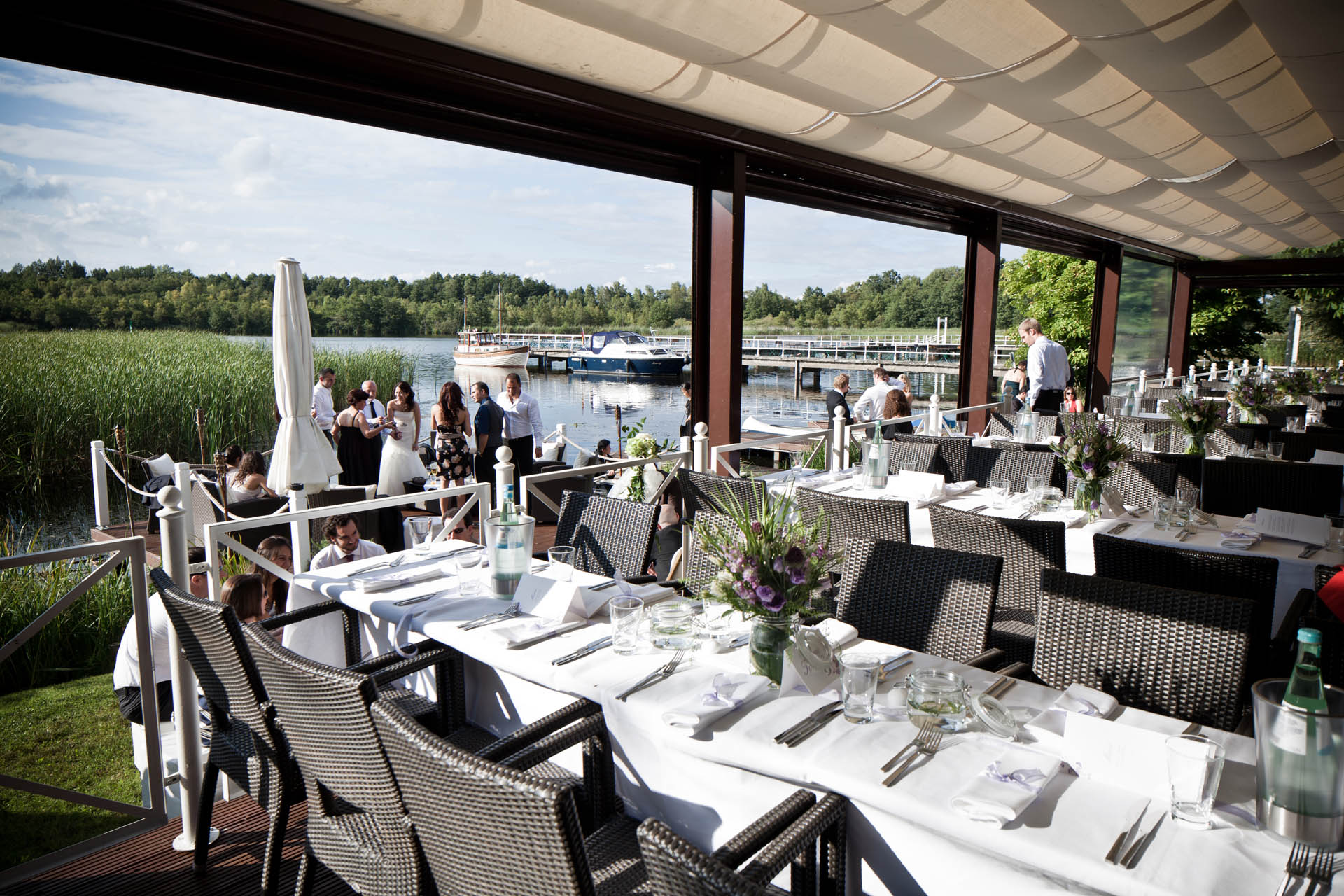Weg vom Trubel unserer Heimatstadt liegt ca. 30 Autominuten entfernt die bezaubernde SeeLodge, über der Brandenburgs blauer Himmel und roter Adler uns hoffentlich bestes Wetter am 20.Juli 2019 bescheren werden. Im Inneren des Hauses fänden alle Gäste aber auch im Falle eines untypisch nassen Julitages ein Plätzchen an einem der großen Tische, die im gemütlichen Restaurantbereich des Steghauses sind. Ansonsten planen wir den großzügigen Außenbereich der Seelodge mit euch in Schwung zu versetzen. Auf der Terrasse sollten wir im Sonnenschein sitzen können und später des Abends das musikalische Programm auf der Freilichtbühne genießen können. Somit wären alle hoffentlich eingestimmt für den Hochzeitstanz mit Braut und Bräutigam. Für die Kleinen und Kleinsten wird nicht nur ein Wickel- und Ruhebereich eingerichtet werden, sondern auch einen großzügigen Spielbereich. Wer sich zwischendurch nicht nur mit einem kalten Getränk erfrischen will, kann auch in Badesachen schlüpfen und direkt an der angrenzenden Badestelle oder vom Steg direkt in den See springen. Wiesenflächen um die Seelodge herum können von campingbegeisterten Gästen für die Übernachtung genutzt werden.